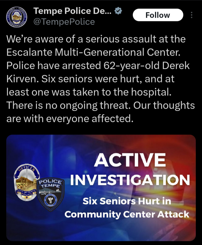 6 seniors injured after attack at Tempe, Ariz. community center, police say