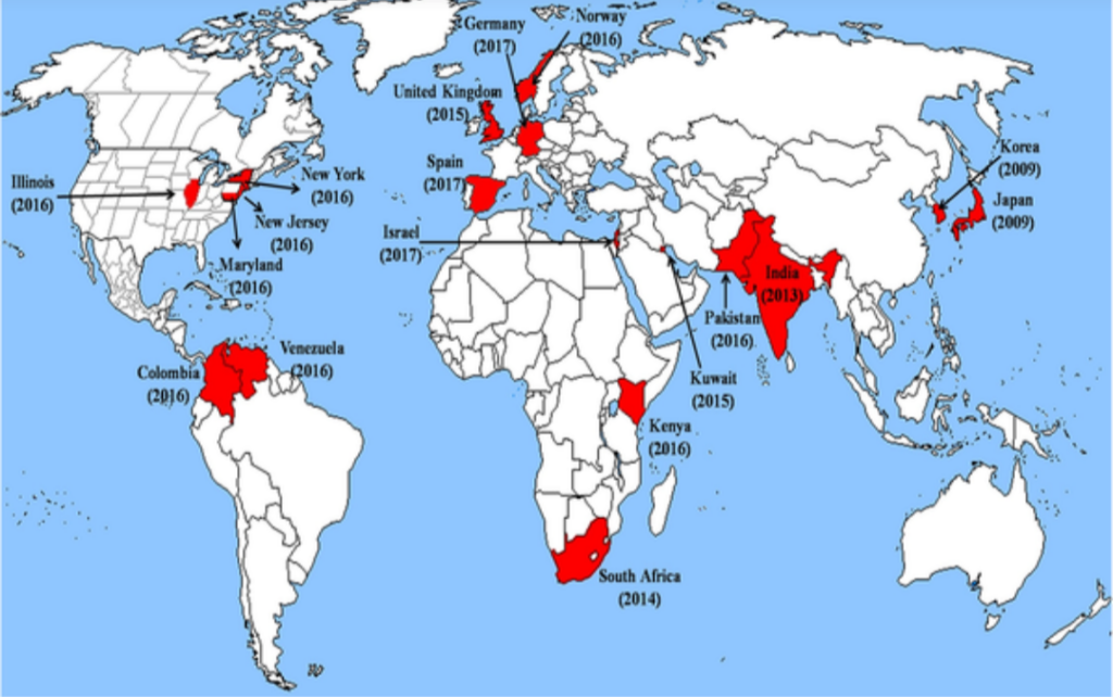 A review published in late December 2025 in Microbiology and Molecular Biology Reviews indicates that Candida auris (C. auris) is rapidly expanding globally with heightened virulence and multi-drug resistance. As of January 2026, the pathogen has been detected in at least 61 countries and is increasingly recognized as a regional endemic presence in the United States, appearing in at least 27 states.