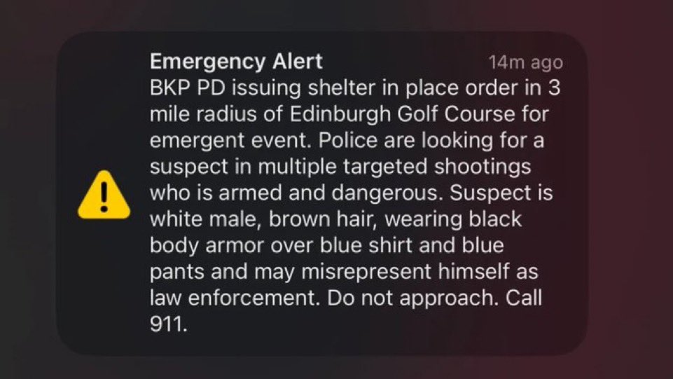 A shelter-in-place order has been issued within a 3-mile radius of the Edinburgh Golf Course.